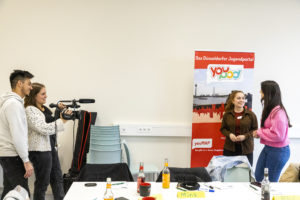 Fotos zur Presseberichterstattung unter der Pressemitteilung. Bitte mit Quellenangabe: Merle Forchmann | Jugendring Düsseldorf. (Hinweis: Die Fotos zeigen die Jugendmedientage 2022)